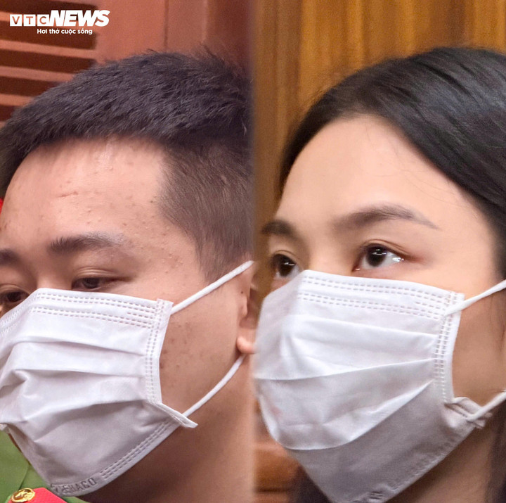 Bị cáo Phạm Quang Linh (trái) và Nguyễn Thúc Thuỳ Tiên tại phiên toà.