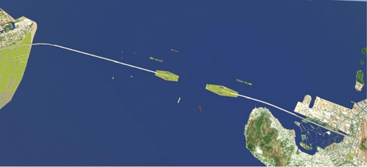 Báo cáo thể hiện tuyến đường vượt biển Cần Giờ - Vũng Tàu dài 14,06 km, gồm cầu và hầm vượt biển, quy mô 6-8 làn xe cơ giới, chưa thiết kế cho xe 2 bánh.