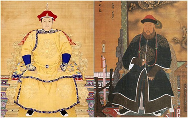 Tranh vẽ Khang Hy (phải) và Ngao Bái trong lịch sử