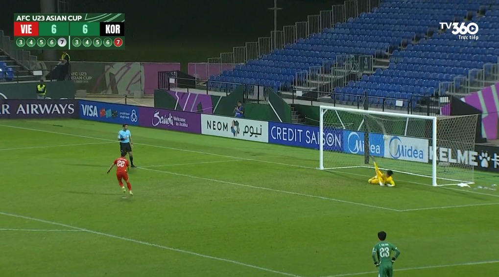 Bên phía U23 Hàn Quốc, Bae Hyun-Seo bước lên chấm 11m với hy vọng níu kéo trận đấu. Nhưng trước mặt anh là Cao Văn Bình - người gác đền của U23 Việt Nam. Trong khoảnh khắc quyết định, thủ môn áo xanh đã xuất sắc cản phá cú sút, khiến khán đài vỡ òa, thắp lên niềm tin chiến thắng cho đội nhà.