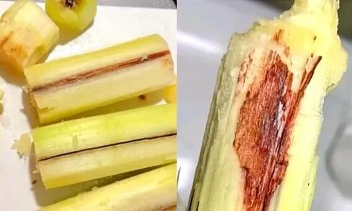 Ví dụ, mía khi bổ ra có màu đỏ hoặc xuất hiện sợi đỏ là dấu hiệu bị nấm mốc, có thể sinh ra độc tố thần kinh nguy hiểm, tuyệt đối không nên ăn. Tương tự, dừa nếu phần nước hoặc cùi chuyển sang màu hồng hoặc tím cũng có nguy cơ bị nhiễm nấm.