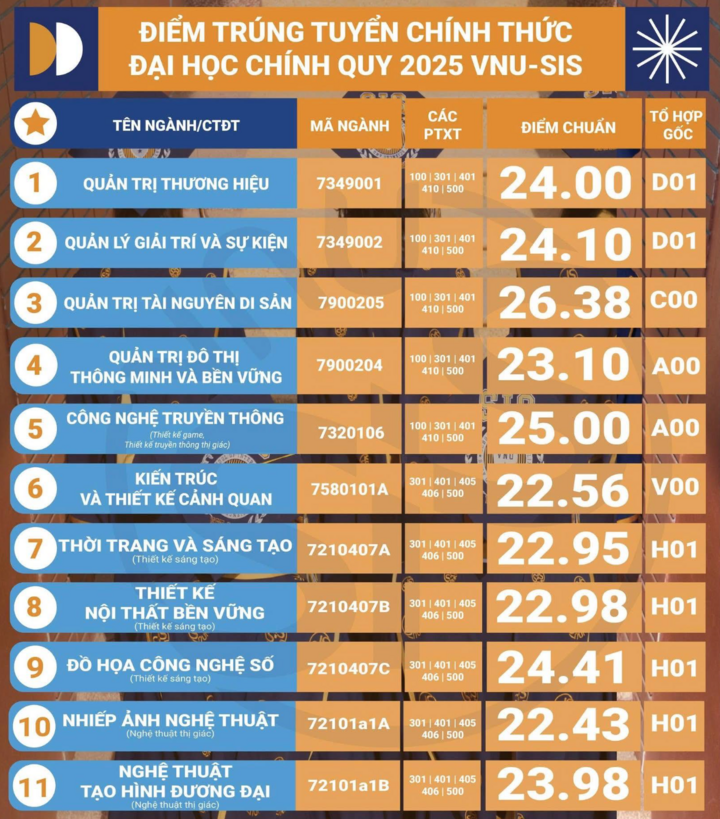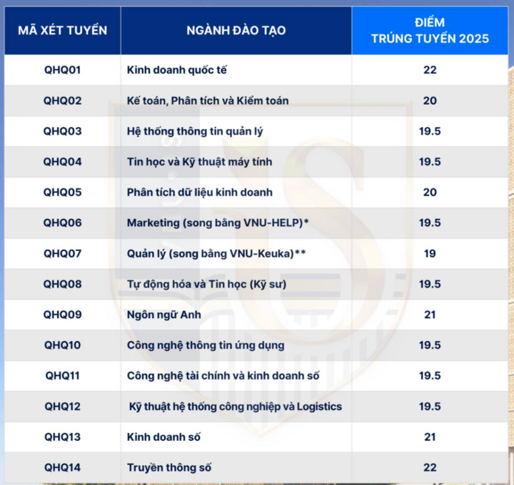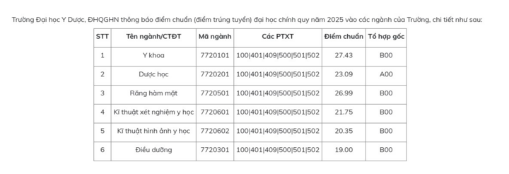 Điểm chuẩn 12 trường thành viên Đại học Quốc gia Hà Nội năm 2025