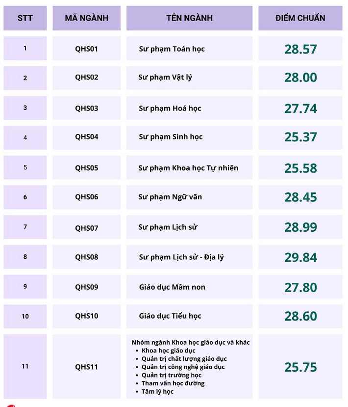 Trường Đại học Giáo dục (25,37 - 29,84 điểm)