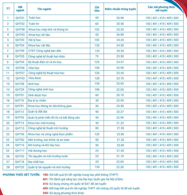 Trường Đại học Khoa học Tự nhiên (20,05 - 26 điểm)
