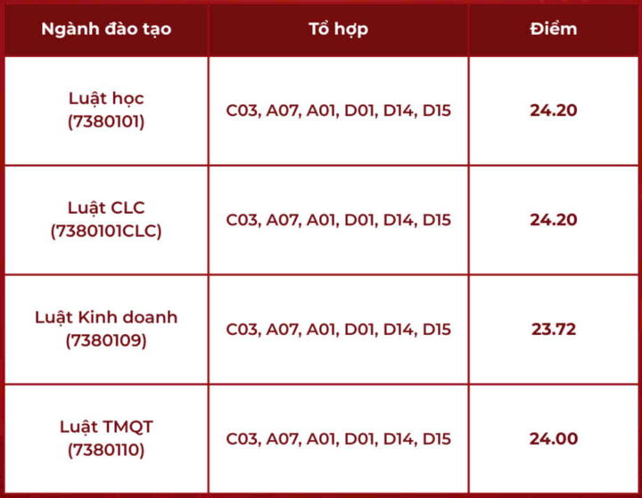 Trường Đại học Luật (23,72 - 24,2 điểm)