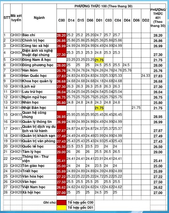 Trường Đại học Khoa học Xã hội và Nhân văn (21,75 - 29 điểm)