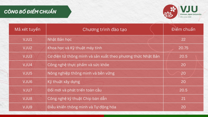 Trường Đại học Việt Nhật (20 - 22 điểm)