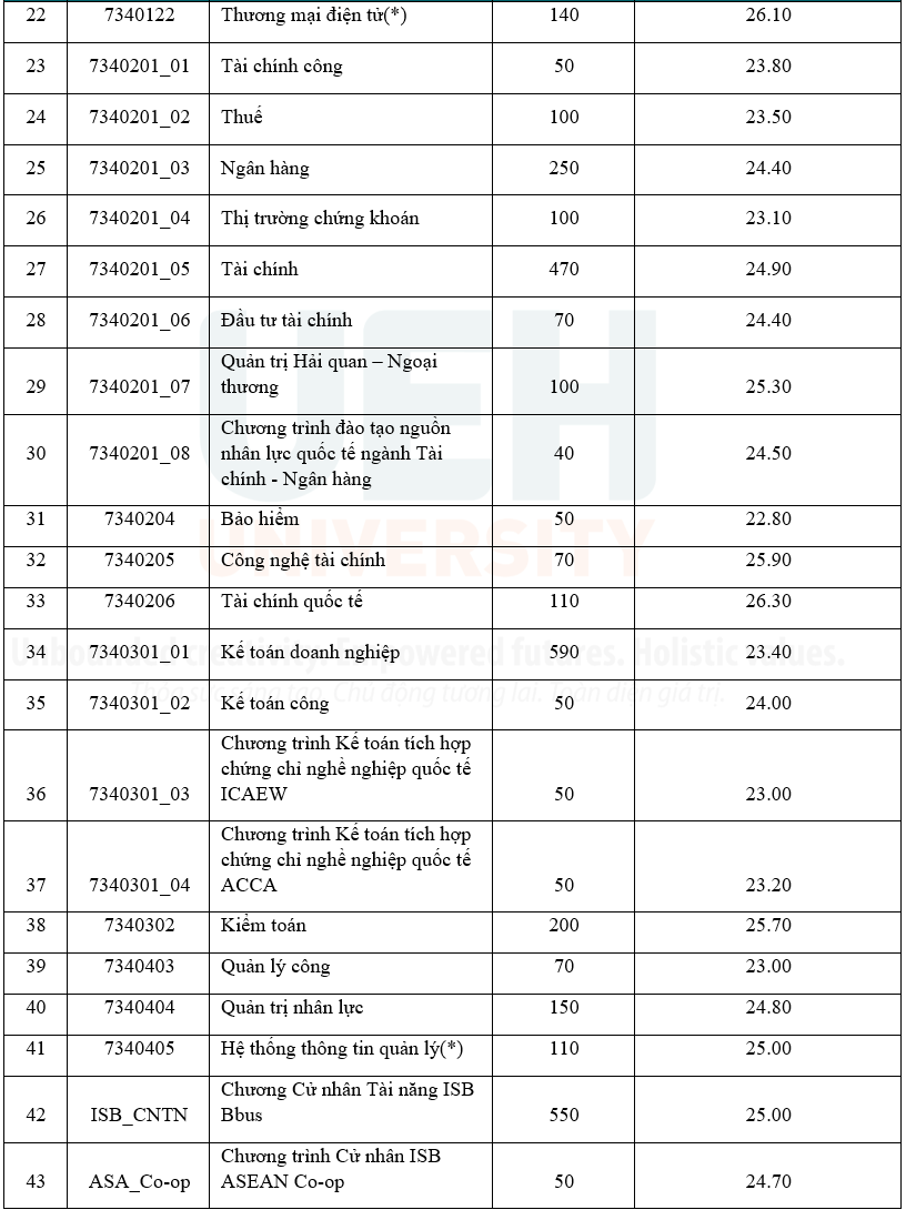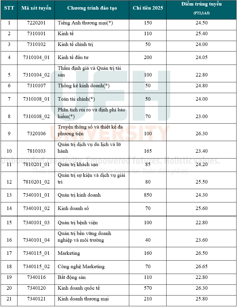 Dưới đây là điểm chuẩn Đại học Kinh tế TP.HCM năm 2025: