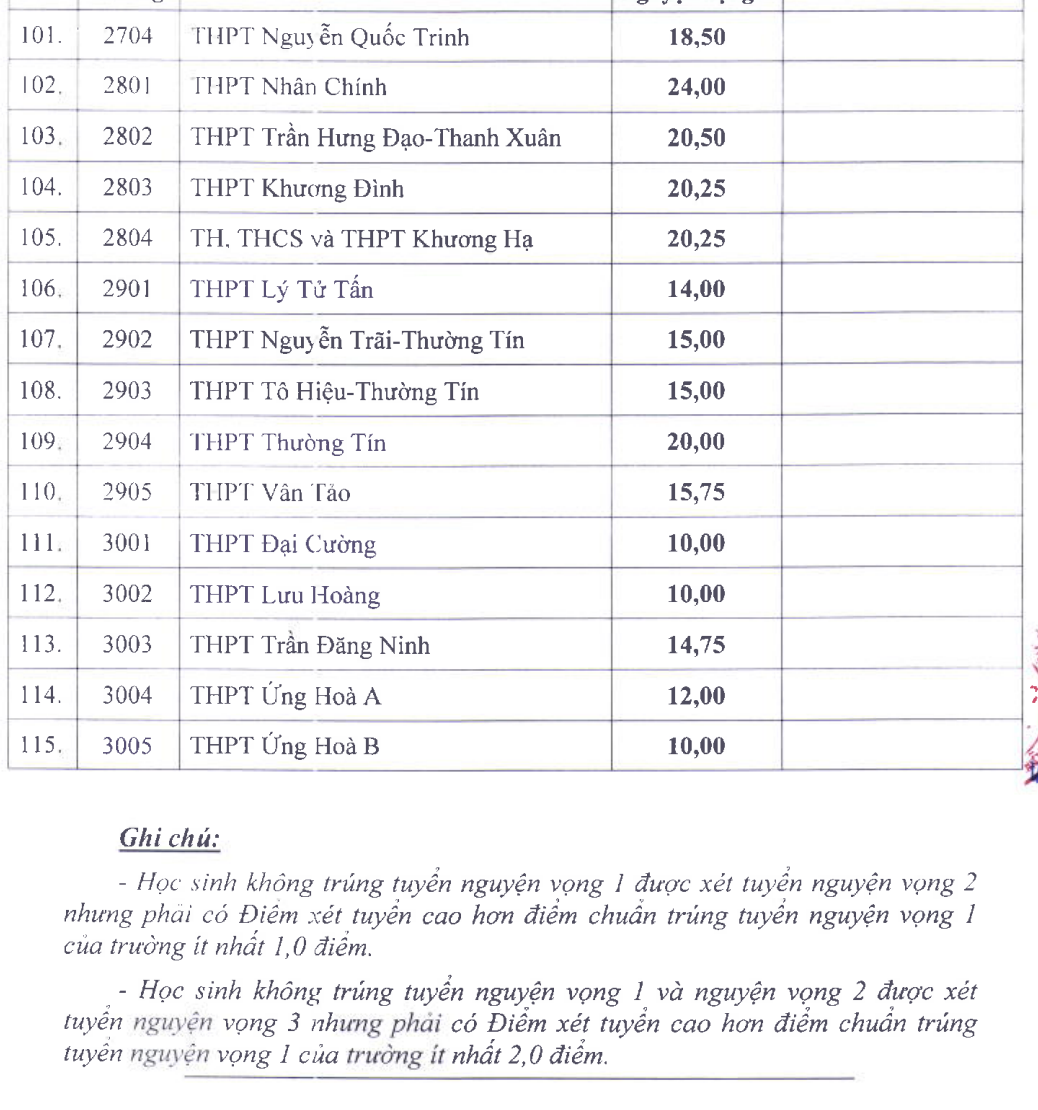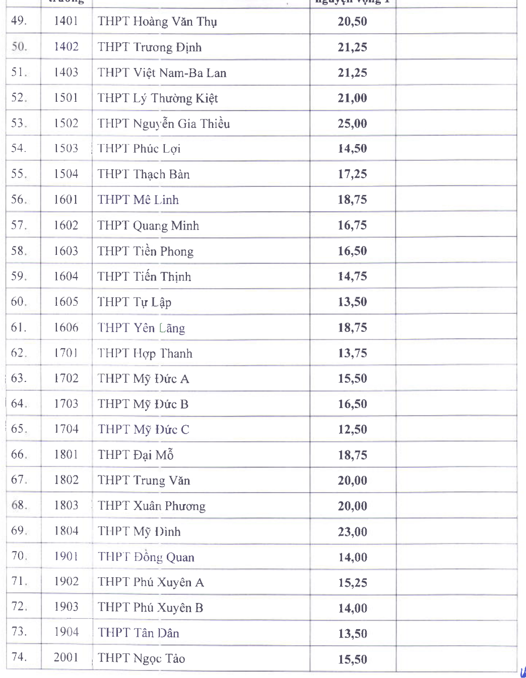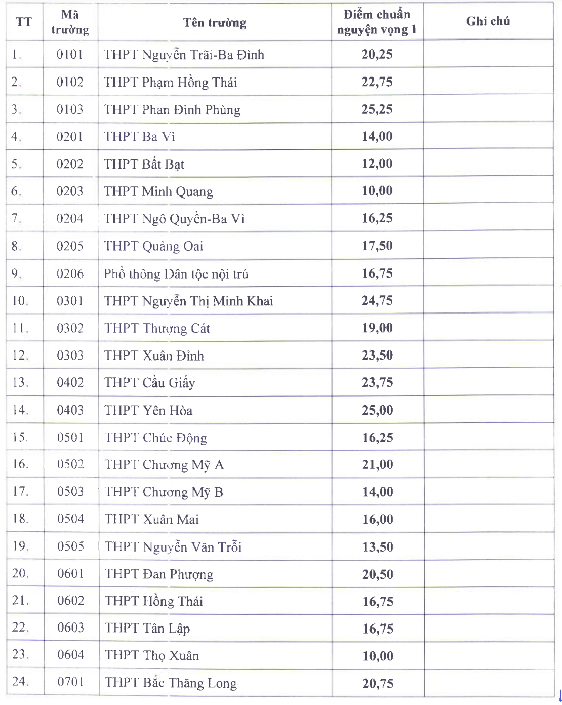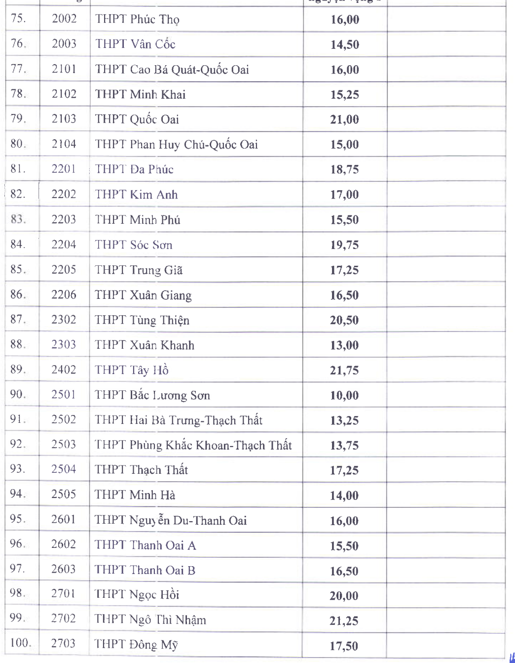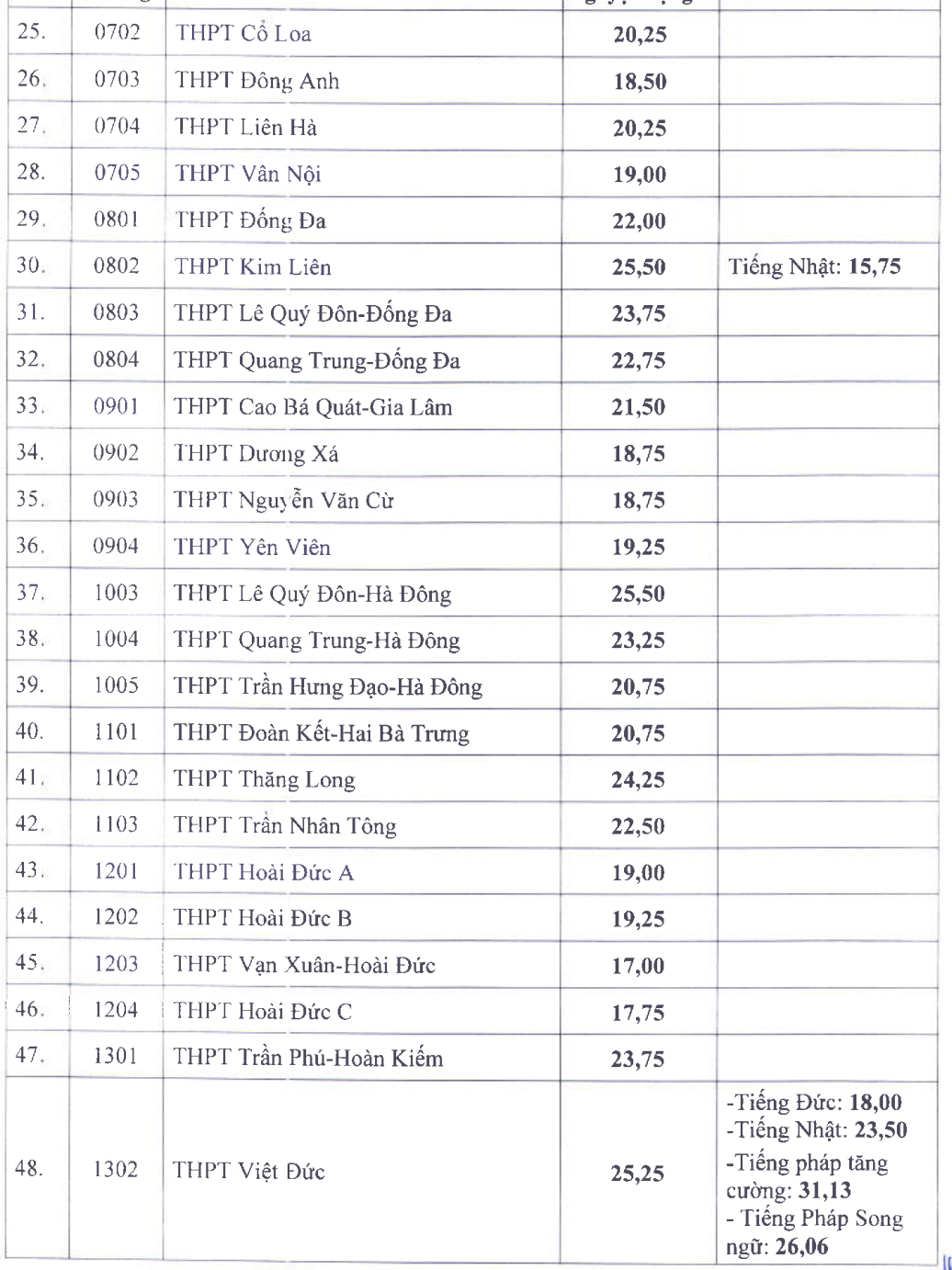 Điểm chuẩn trúng tuyển vào lớp 10 năm học 2025-2026 của các trường THPT công lập trên địa bàn Hà Nội cụ thể như sau:
