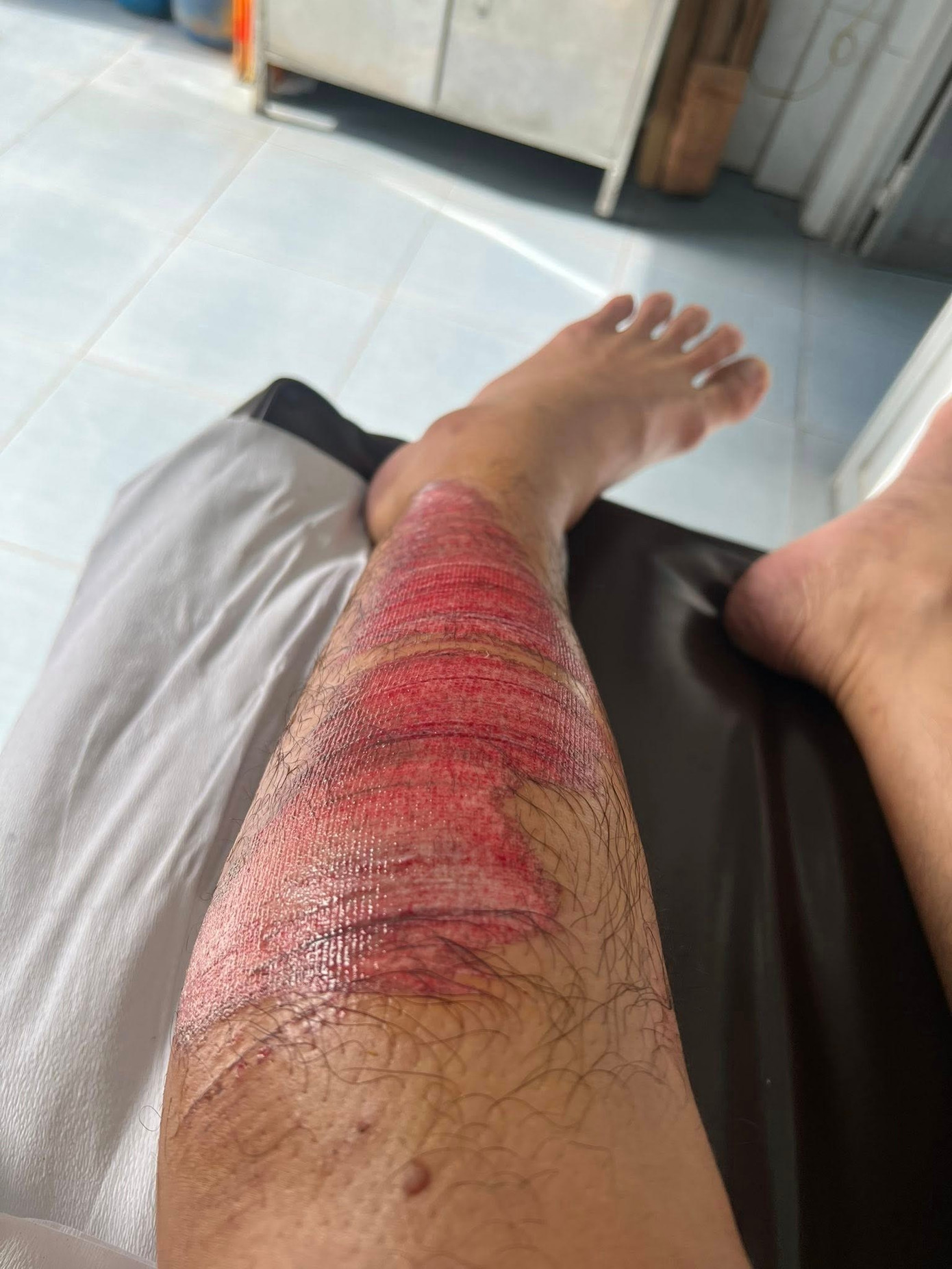 Quách Ngọc Tuyên cho biết chỉ bị thương phần mềm, không gãy xương hay chấn thương nặng.