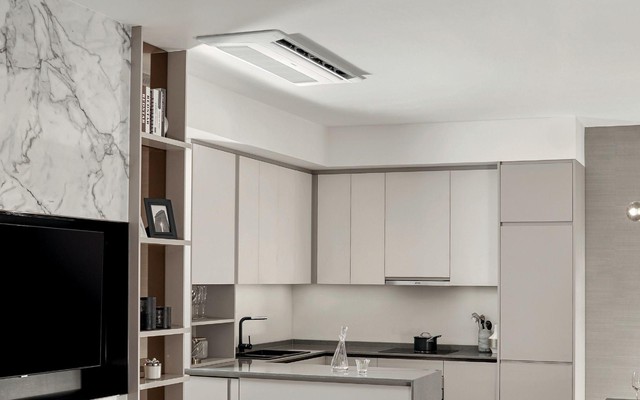 Thay vì tiêu tốn một phần diện tích tường để lắp đặt điều hoà không khí, việc chuyển thiết bị này lên trần nhà sẽ giúp giải phóng hoàn toàn không gian và giữ trọn vẻ đẹp kiến trúc.