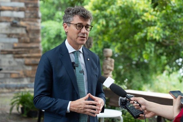 Ông Jonathan Baker - Trưởng đại diện UNESCO đang trả lời phỏng vấn tại Diễn đàn Di sản Cà phê Thế giới.
