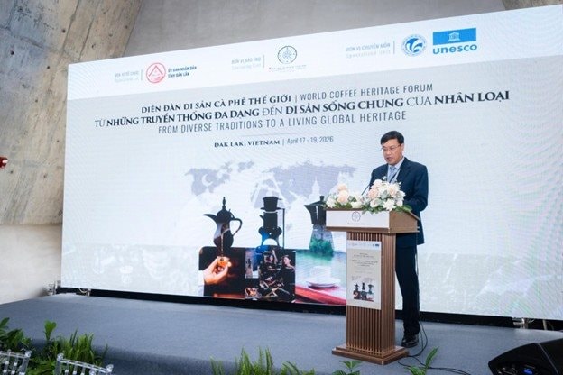 Tiếp nối Hội thảo khoa học - Diễn đàn quốc tế “Chuỗi giá trị ngành công nghiệp cà phê toàn cầu – phát triển toàn cầu, địa phương và bền vững” (tháng 12/2025), từ ngày 17-19/4/2026 tại Buôn Ma Thuột, Diễn đàn Di sản Cà phê Thế giới với chủ đề “Từ những truyền thống đa dạng đến di sản sống chung của nhân loại” chính thức khai mạc, mở ra một không gian đối thoại quốc tế đa chiều về văn hóa, kinh tế và tương lai của cà phê. Sự kiện do UBND tỉnh Đắk Lắk, UNESCO và Trường Đại học Văn hóa TP.HCM phối hợp tổ chức với sự đồng hành của Tập đoàn Trung Nguyên Legend.