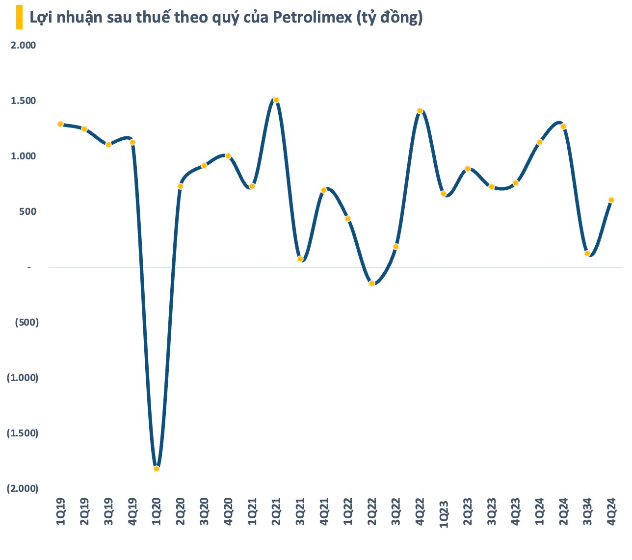 Sau khi trừ chi phí và ghi nhận khoản lợi nhuận khác 163 tỷ đồng (cùng kỳ 51 tỷ đồng), Petrolimex lãi sau thuế 612 tỷ đồng, giảm gần 20% so với cùng kỳ 2023. Trong đó, lợi nhuận sau thuế thuộc về cổ đông công ty mẹ (lãi ròng) đạt 545 tỷ đồng, giảm 15% so với cùng kỳ.