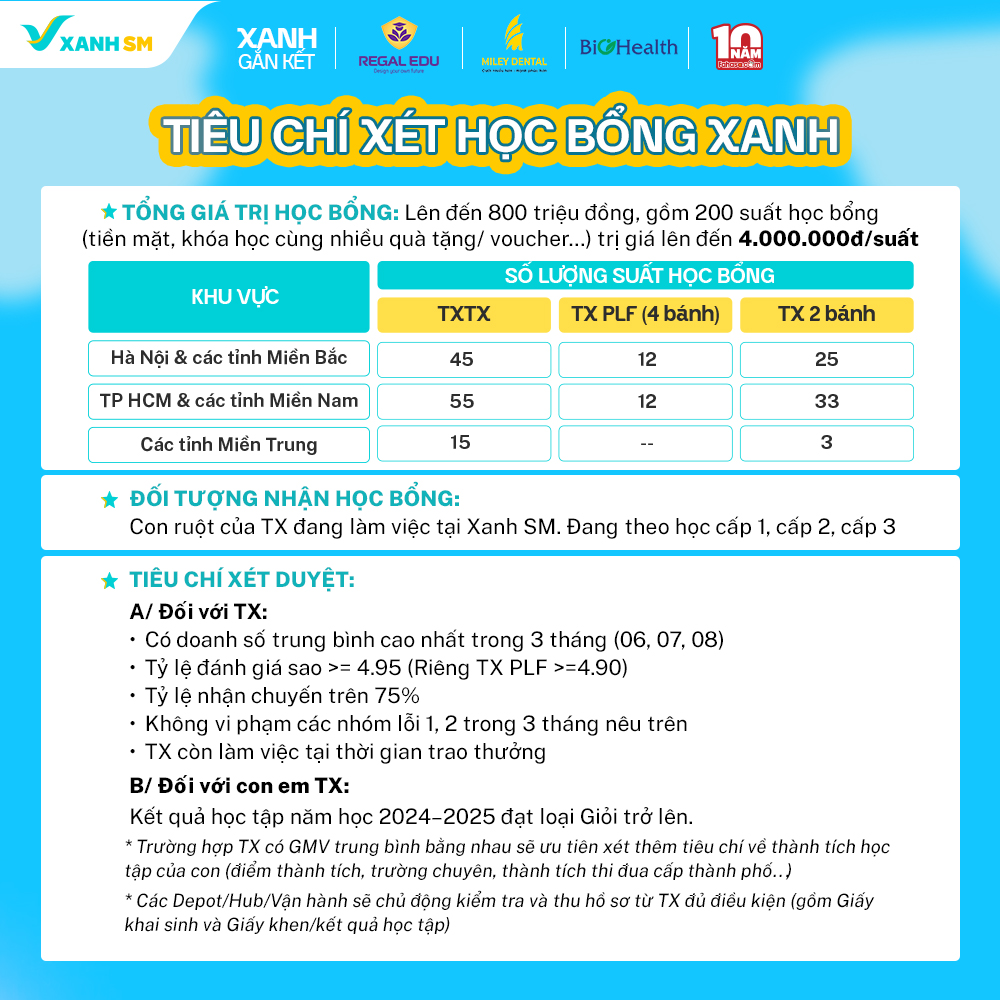 Trong thông báo mới nhất, Xanh SM cho biết chính thức triển khai chương trình HỌC BỔNG XANH 2025 – một món quà ý nghĩa và tự hào dành cho thế hệ tương lai. Chương trình được lập ra với mong muốn đồng hành cùng hành trình nuôi dưỡng tri thức của con em tài xế.