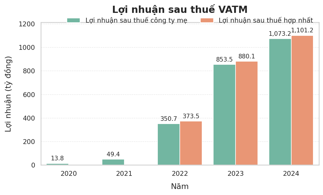 Theo báo cáo tài chính hợp nhất năm 2024, VATM ghi nhận doanh thu thuần hợp nhất năm 2024 đạt 4.162 tỷ đồng, trong đó, chủ yếu đến từ doanh thu điều hành bay qua, bay đi đến, bay quốc nội. Lợi nhuận sau thuế hợp nhất đạt 1.101 tỷ đồng, tăng 25% so với năm 2023.