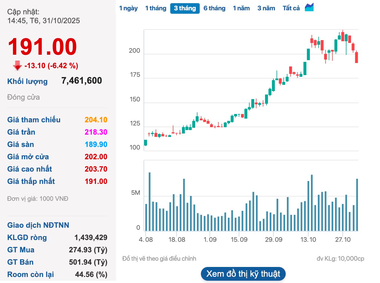 Trên thị trường chứng khoán, cổ phiếu VIC có phiên giảm thứ 3 liên tiếp, kết phiên 31/10 còn 191.000 đồng/cp.