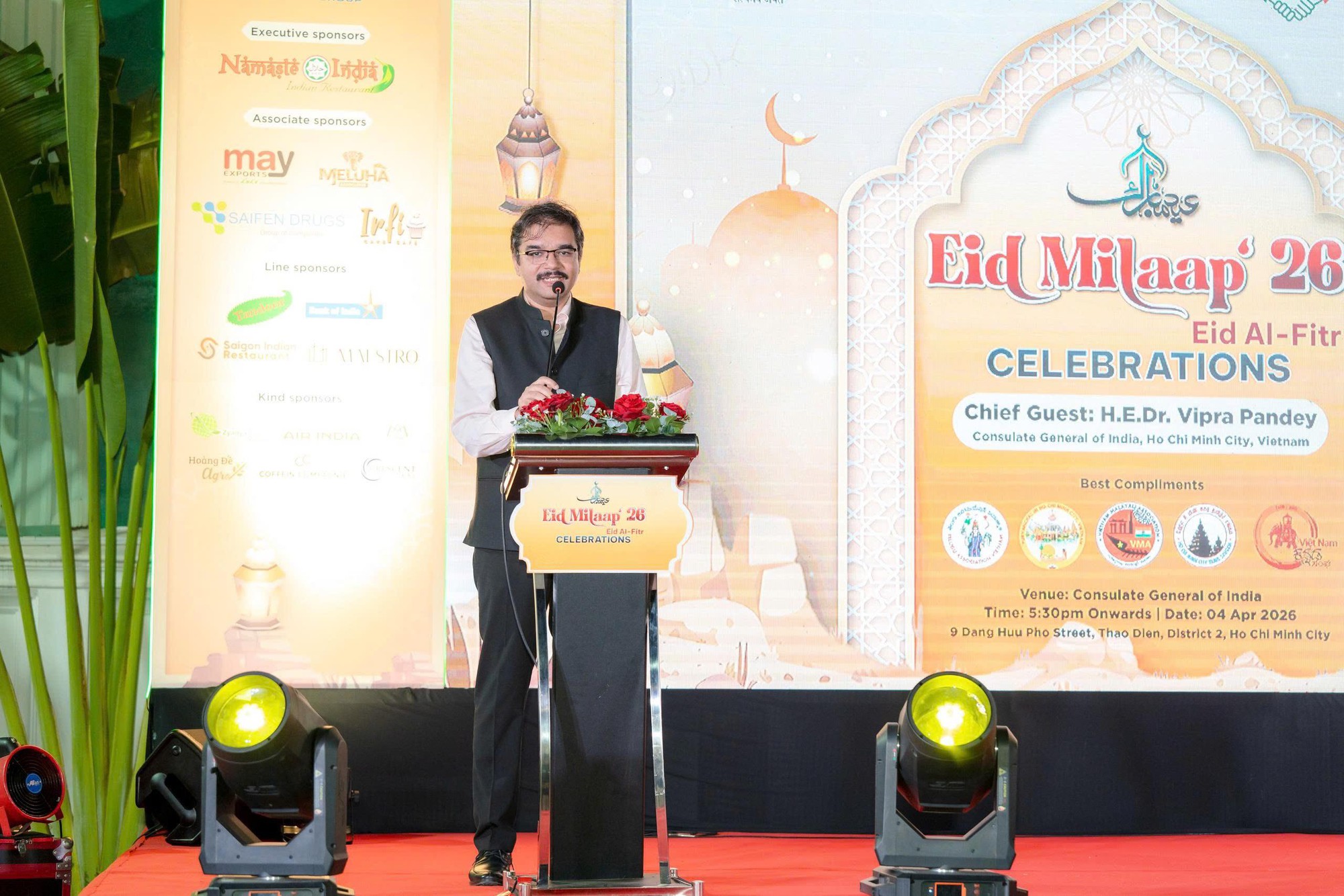 Bên cạnh các hoạt động Yoga, ngày 4/4/2026, lễ hội Eid Milaap 2026 đã được tổ chức tại TP.HCM với không khí trang trọng và ấm cúng. Sự kiện có sự tham dự của Tổng Lãnh sự Ấn Độ – Tiến sĩ Vipra Pandey cùng đại diện các cơ quan ngoại giao Malaysia, Indonesia và nhiều khách mời, góp phần tăng cường kết nối cộng đồng đa quốc gia.