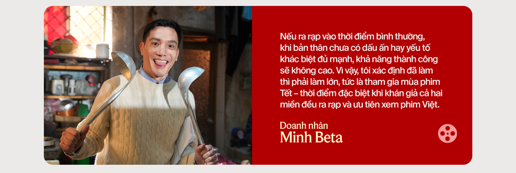 Nếu ra rạp vào thời điểm bình thường, khi bản thân chưa có dấu ấn hay yếu tố khác biệt đủ mạnh, khả năng thành công sẽ không cao. Vì vậy, tôi xác định đã làm thì phải làm lớn, tức là tham gia mùa phim Tết – thời điểm đặc biệt khi khán giả cả hai miền đều ra rạp và ưu tiên xem phim Việt.