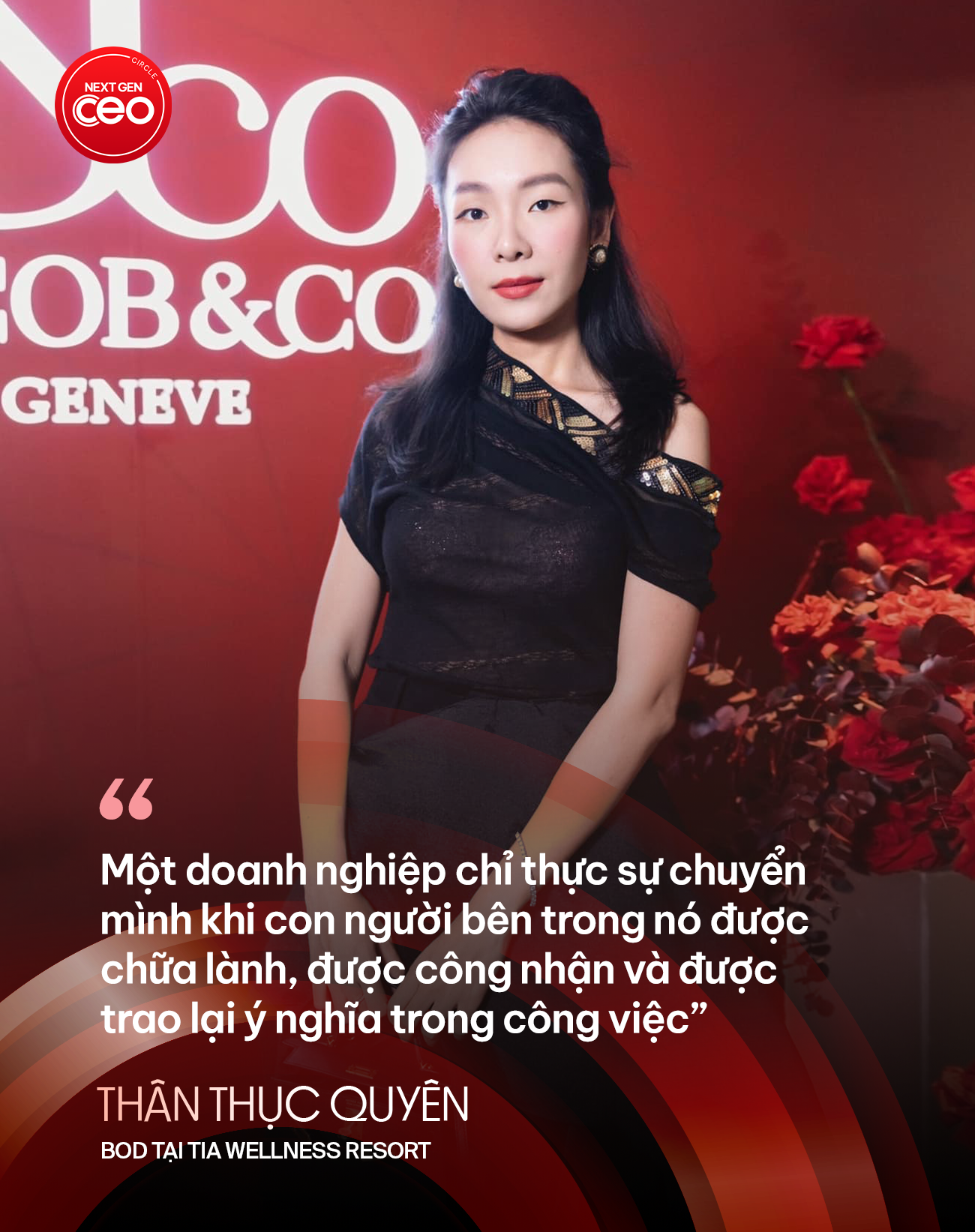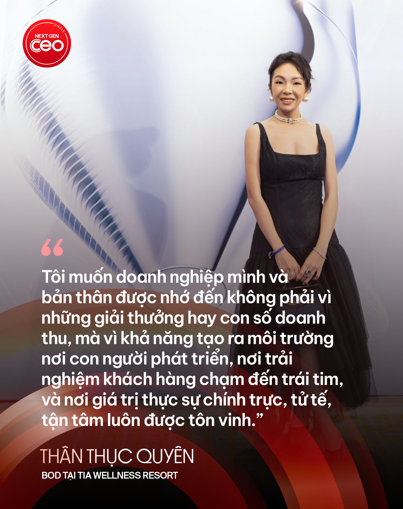 “Đối với tôi, làm lãnh đạo trong ngành Wellness không chỉ là quản trị tài sản, quy trình hay doanh thu. Đó là hành trình lãnh đạo trái tim con người”, chị Thân Thục Quyên cho biết.