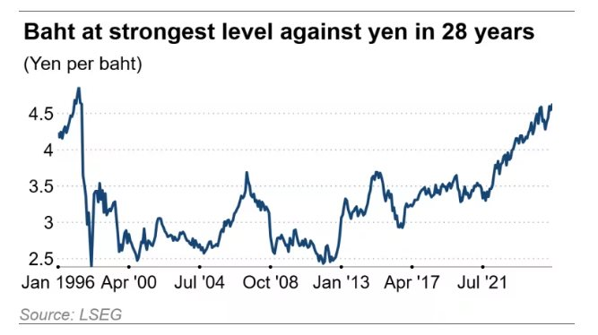 Đồng Baht Thái đang ở mức cao nhất 28 năm so với đồng Yên Nhật Bản