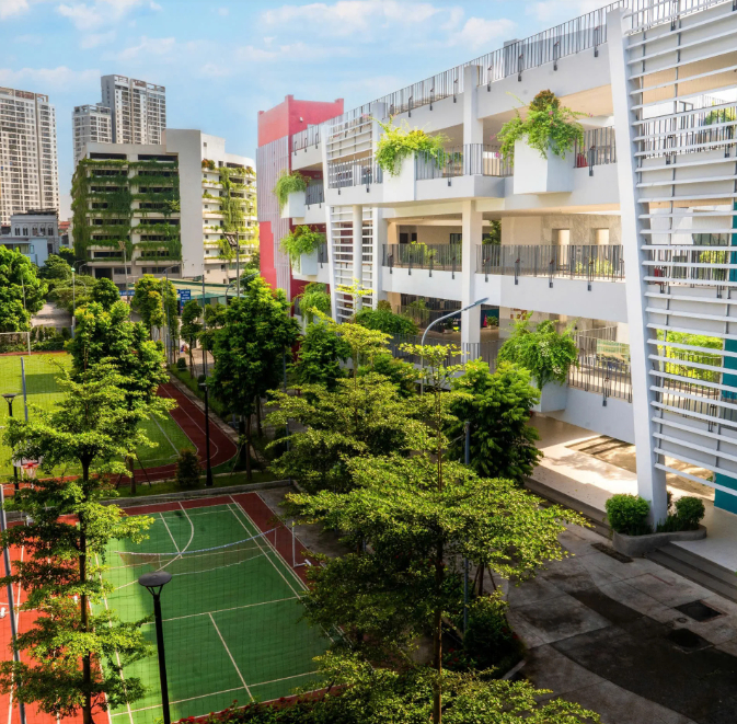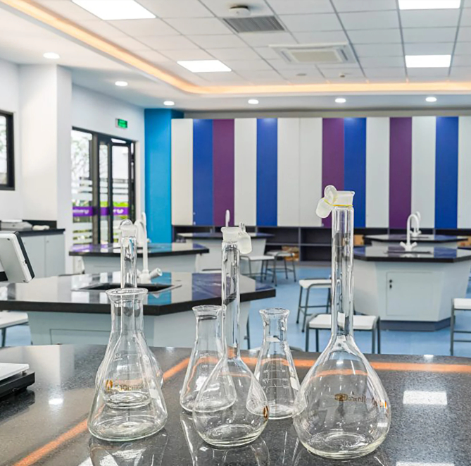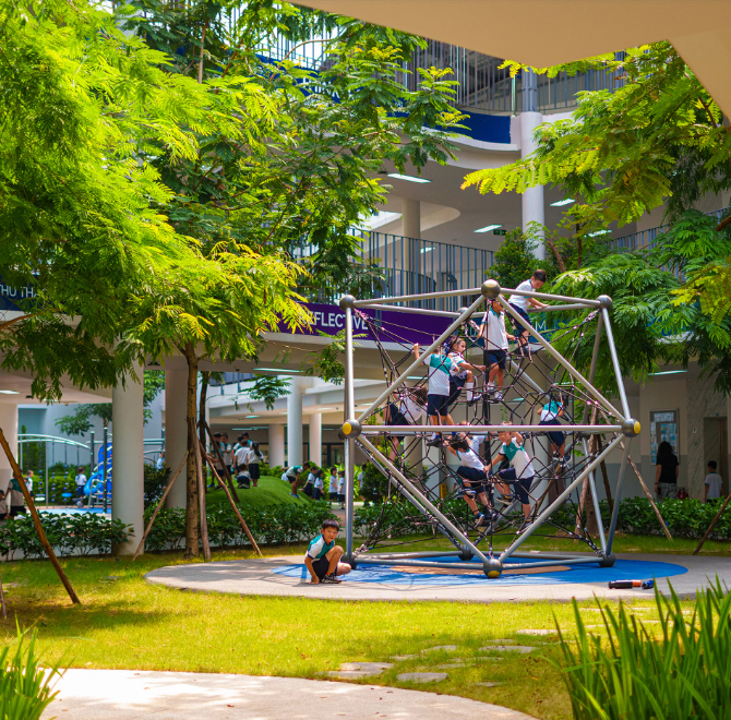 Về cơ sở vật chất, nhà trường có các lớp học được trang bị hệ thống đèn chiếu sáng, điều hòa và thông gió; màn hình tương tác công nghệ cao và các dụng cụ học tập hiện đại. Bên cạnh đó là hệ thống phòng học bộ môn hiện đại gồm phòng Âm nhạc, phòng STEM, phòng thí nghiệm, phòng công nghệ thực phẩm, phòng máy tính... hỗ trợ thực hành các môn khoa học; sân khấu kịch, lớp khiêu vũ, lớp nhạc, phòng thu âm, studio và lớp nghệ thuật thị giác.