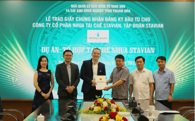 Công ty Cổ phần Nhựa tái chế Stavian chính thức nhận Giấy chứng nhận đăng ký đầu tư Dự án Tổ hợp Tái chế Nhựa Stavian tại Khu Kinh tế Nghi Sơn, tỉnh Thanh Hóa.