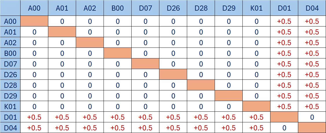 Độ lệch điểm giữa các tổ hợp xét tuyển vào khối nhóm ngành kỹ thuật (A00, A01, A02, B00, D07, D26, D28, D29 và K01) và các tổ hợp sử dụng để xét tuyển vào khối nhóm ngành kinh tế, giáo dục, ngoại ngữ (D01 và D04) là +0.5 điểm vào mức điểm chuẩn khi xét cùng vào một chương trình đào tạo đối với các tổ hợp A00, A01, A02, B00, D07, D26, D28, D29 và K01.