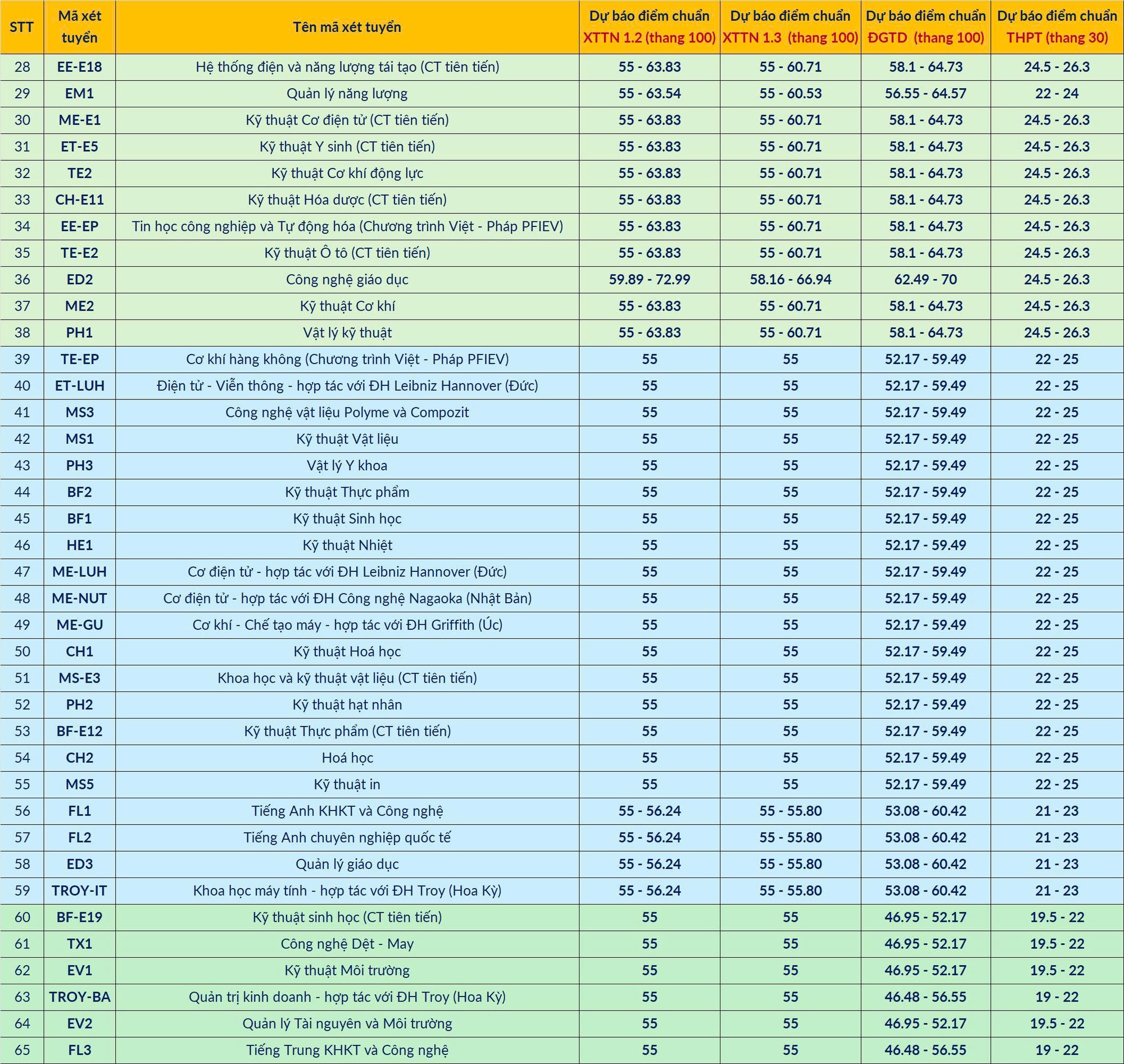 Đại học Bách khoa Hà Nội đưa ra dự báo điểm chuẩn vào 65 chương trình đào tạo năm 2025 từ 19 đến 28 điểm.