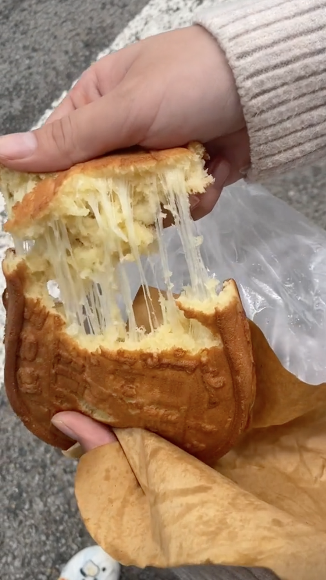 Chiếc bánh đồng xu phô mai được bẻ đôi và cái kết (Nguồn: TikTok @h.hoong912)