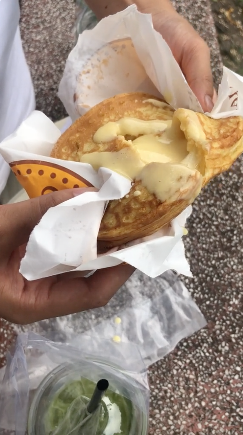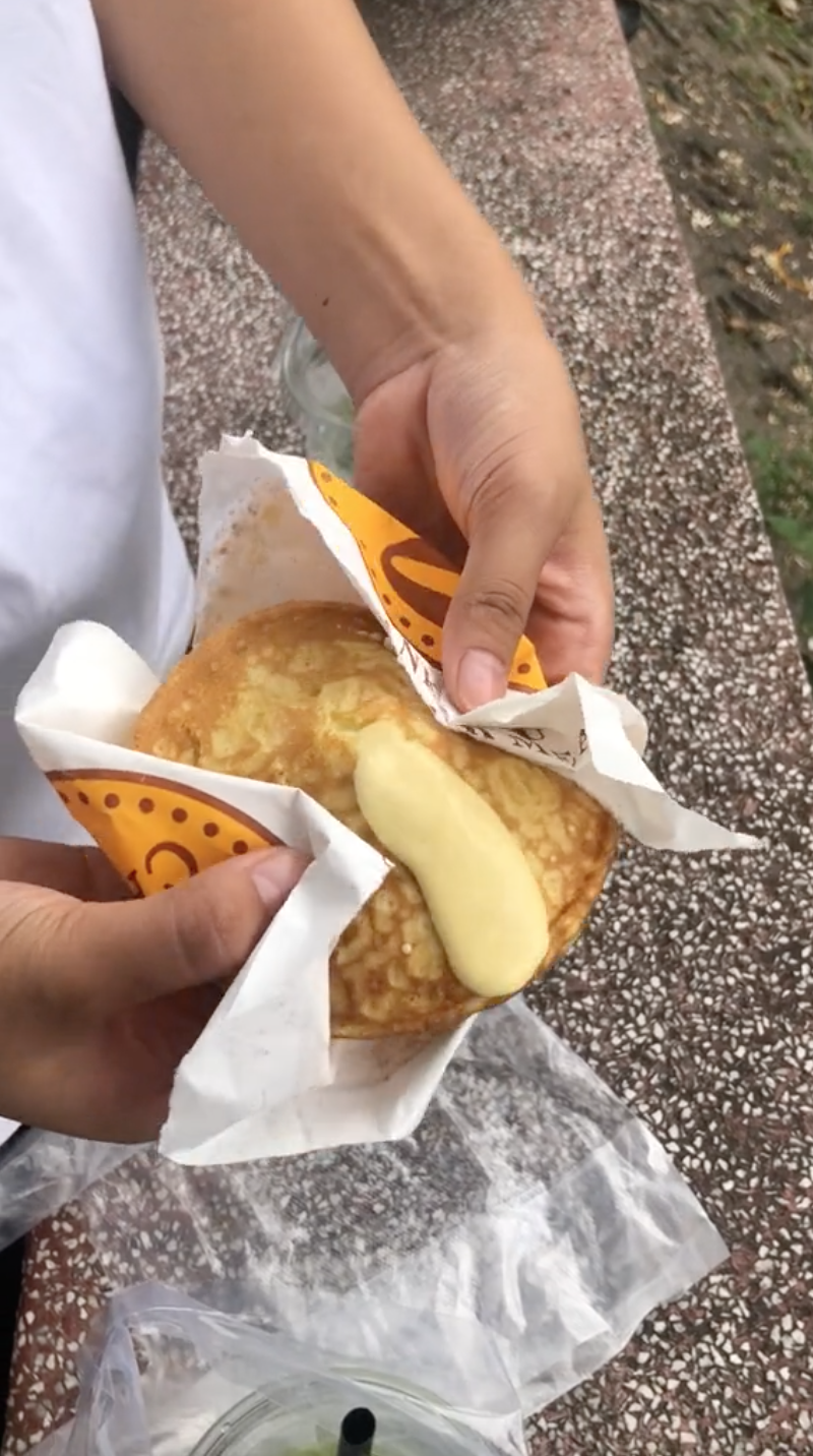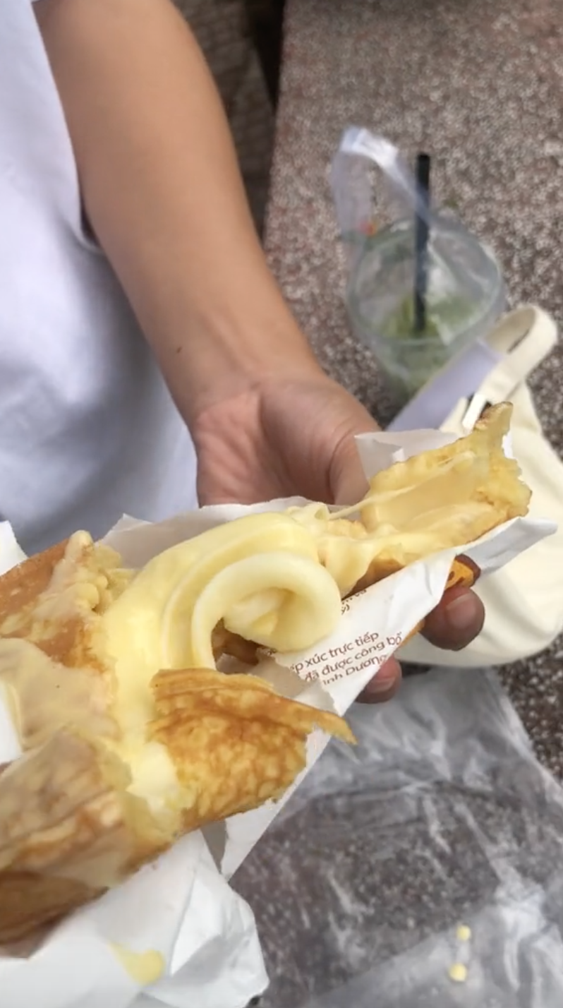 Phần chảy ra bên trong bánh được dự đoán là bột sống (Nguồn: TikTok @h.hoong912)