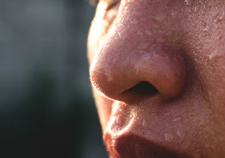 Đổ mồ hôi ở sống mũi và hai bên cánh mũi thường bị nhầm với hiện tượng da dầu hoặc cơ địa nhờn. Tuy nhiên, bác sĩ Chu cho biết đây có thể là dấu hiệu của suy giảm chức năng phổi hoặc hệ miễn dịch yếu.