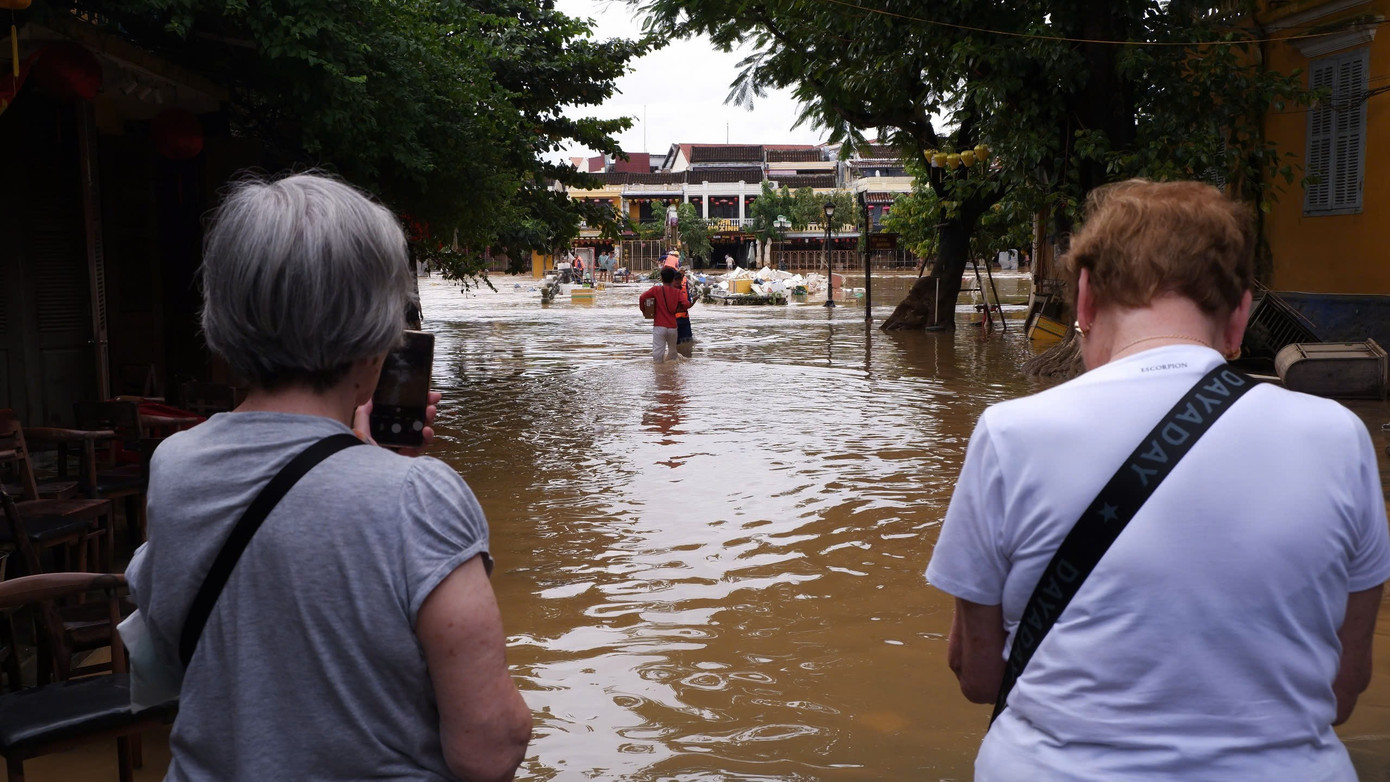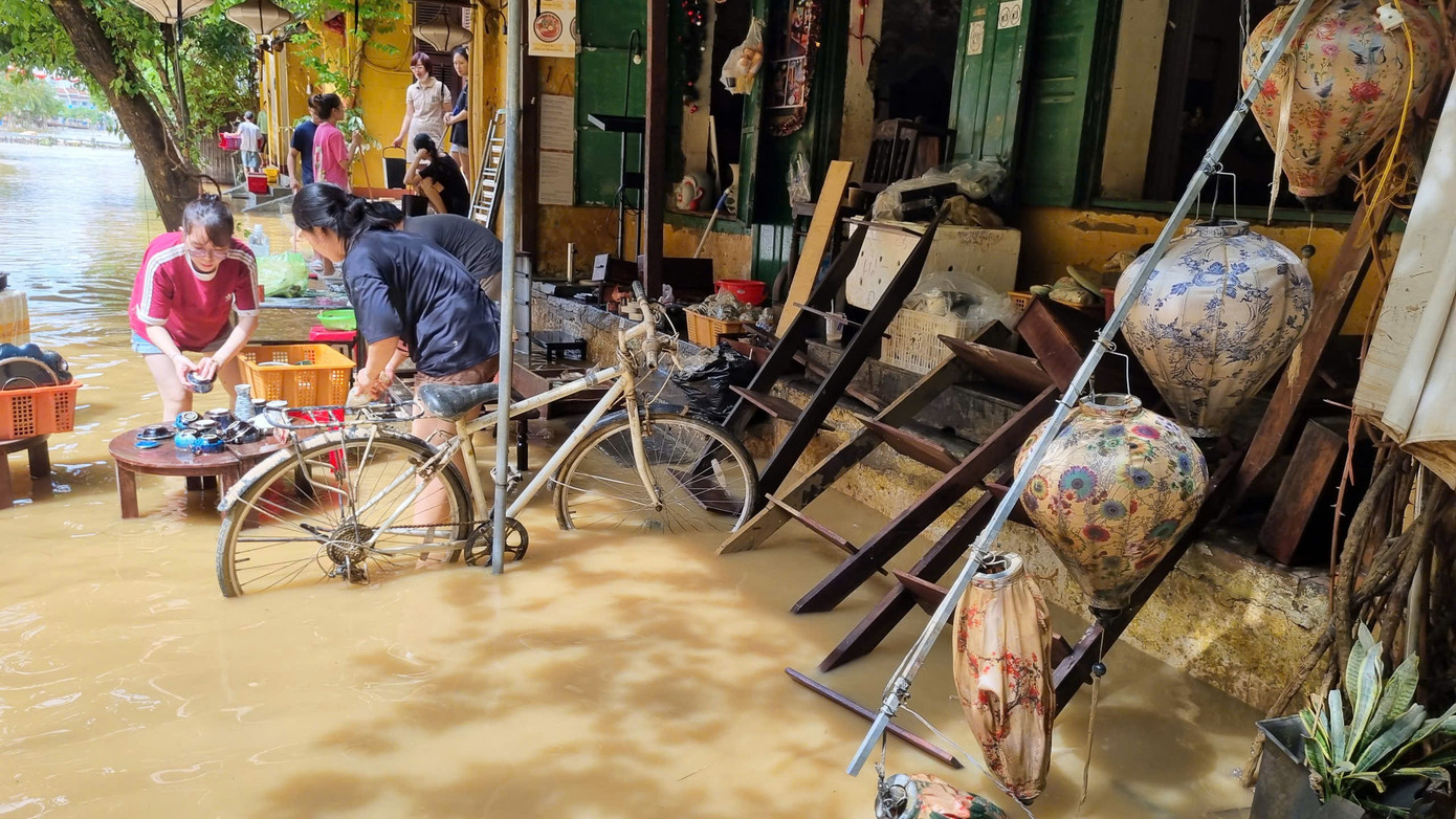 Sau lũ, phố cổ Hội An còn ngổn ngang, các di tích bị nước lũ ngâm lâu ngày, người dân và chủ các di tích, cửa hàng dọn dẹp để sớm hoạt động trở lại. Tuy nhiên, nhiều du khách đã trở lại tham quan phố cổ.
