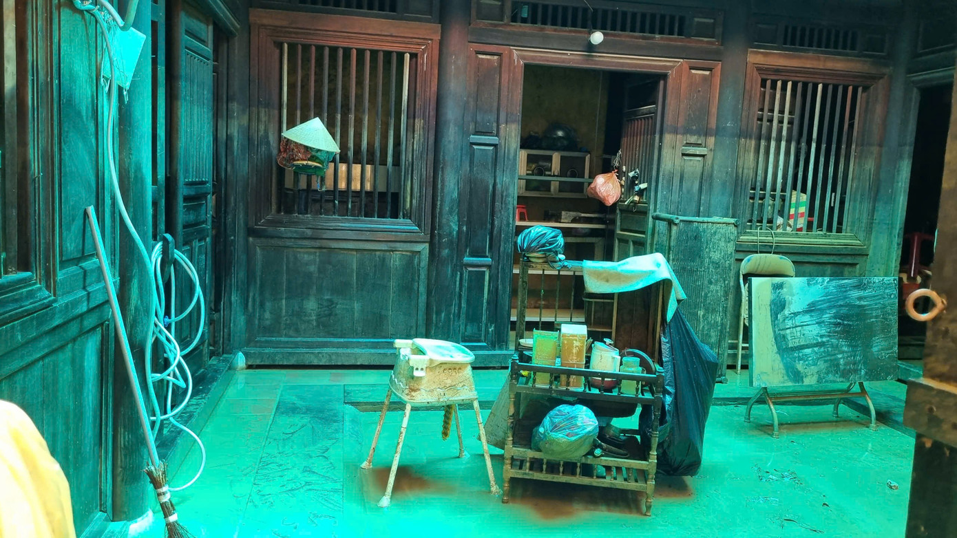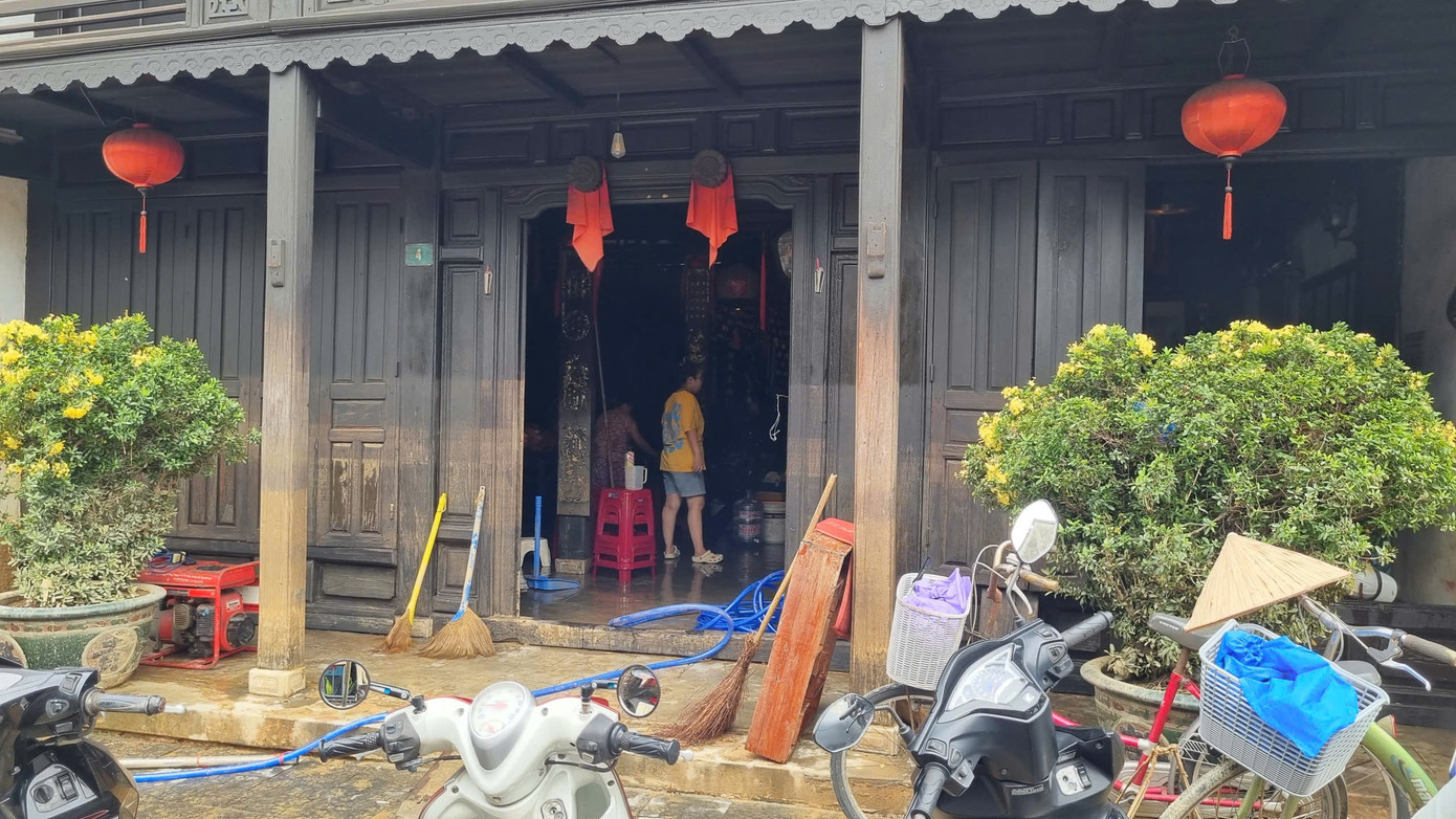 Nhà cổ ngâm trong nước lũ nhiều ngày, các chủ di tích vẫn đang khẩn trương dọn dẹp.