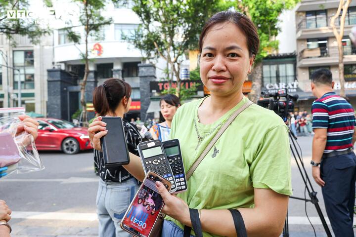 Chị Vương Thị Lan chuẩn bị máy tính cầm tay dự phòng.