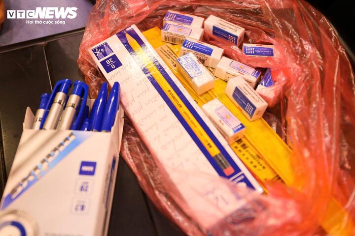 Không chỉ lo cho con trai từng vật dụng nhỏ nhất, chị Lan còn mang theo "bộ tiếp tế" đặc biệt gồm: ba máy tính cầm tay, bút viết, thước kẻ, tẩy, chì và một bộ quần áo dự phòng. Những món đồ không chỉ dành riêng cho con, mà sẵn sàng giúp đỡ bất kỳ sĩ tử nào không may quên đồ dùng hay đến muộn chưa kịp thay trang phục.