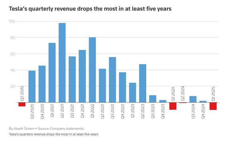 Tháng 4/2025, doanh số Tesla tại 32 quốc gia EU giảm tới 49%, trong khi tổng thị trường xe điện tăng hơn 28% – dấu hiệu rõ ràng cho thấy hãng đang bị cạnh tranh khốc liệt từ các thương hiệu Trung Quốc và châu Âu.