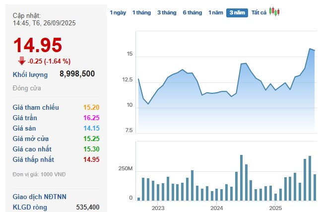 Trên thị trường, cổ phiếu POW chốt phiên 26/9 đạt 14.950 đồng/cp.