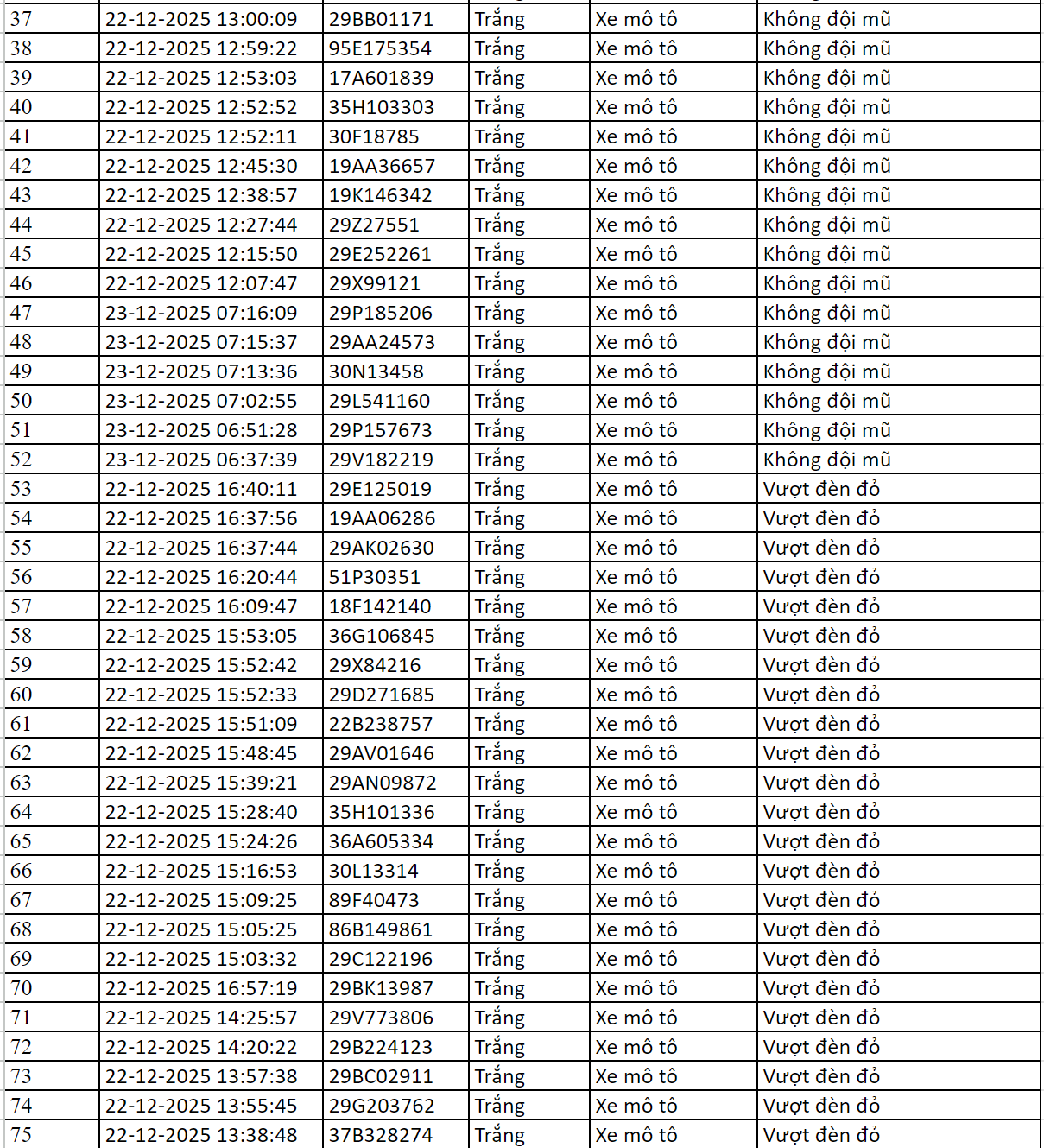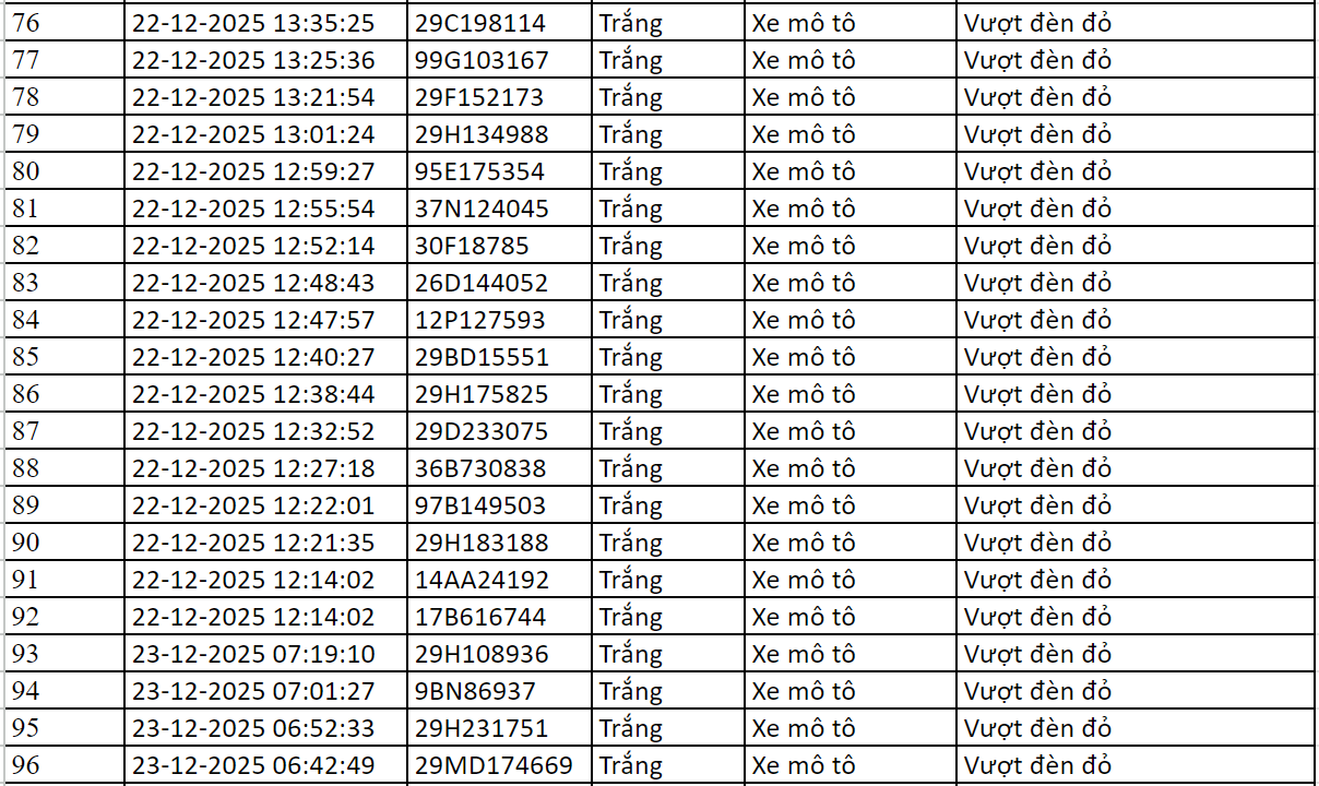 Trong ngày 23/12/2025, Cục Cảnh sát giao thông đã xác định thêm nhiều trường hợp vi phạm trật tự an toàn giao thông qua hệ thống camera A.I.