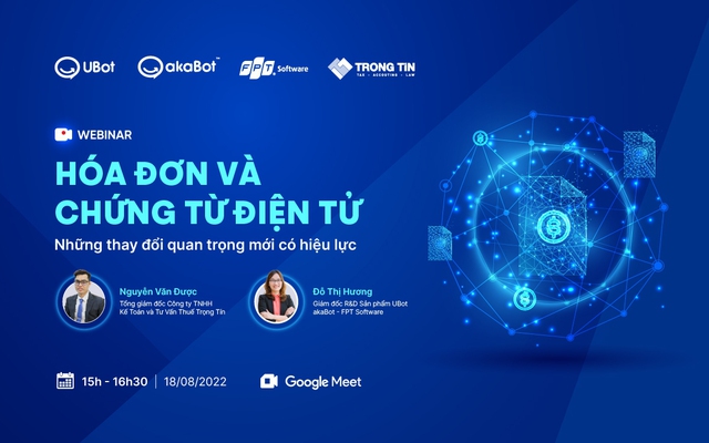 Buổi hội thảo có sự tham gia chia sẻ của các diễn giả dày dặn kinh nghiệm trong lĩnh vực tài chính - kế toán: Ông Nguyễn Văn Được - Tổng giám đốc Công ty TNHH Kế Toán và Tư Vấn Thuế Trọng Tín, Ủy viên ban chấp hành Hội Tư vấn Thuế Việt Nam; Bà Nguyễn Thị Hương - Giám đốc R&D sản phẩm UBot - akaBot, FPT Software và gần 1000 khán giả là các kế toán, chủ doanh nghiệp theo dõi trực tuyến.
