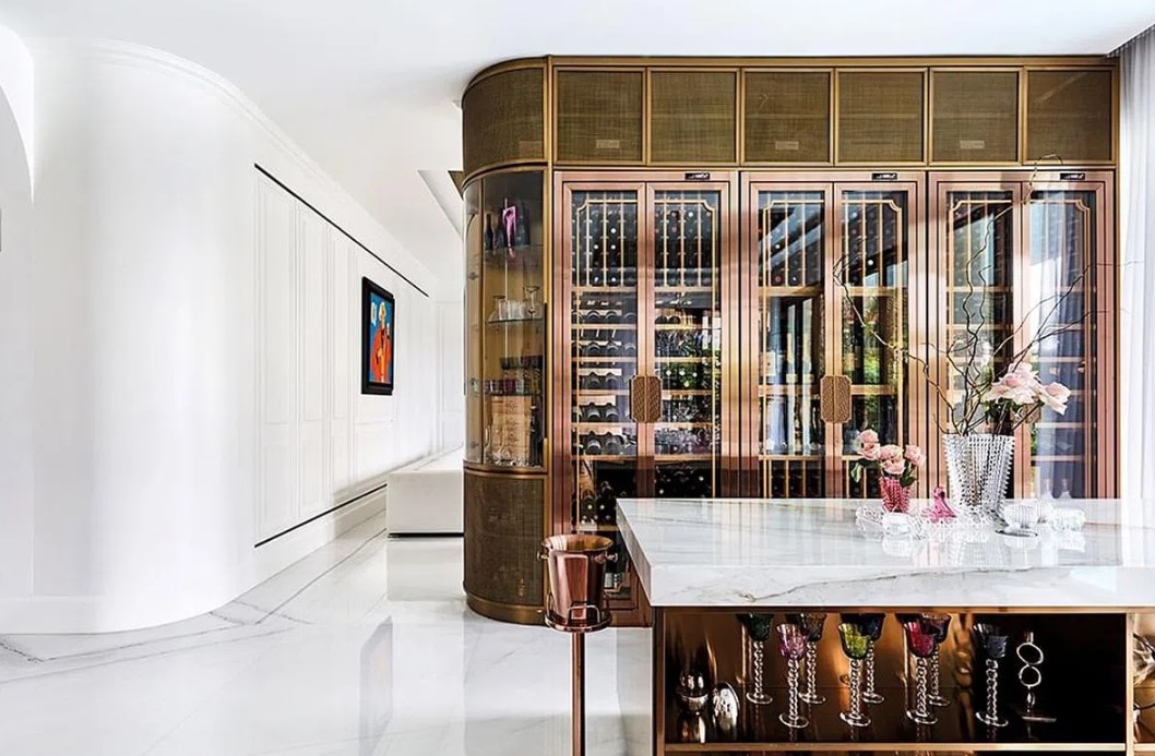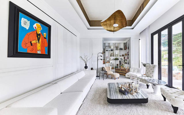 Căn nhà rộng gần 800m2, trị giá khoảng 1.600 tỷ đồng. Nội thất bên trong đều là hàng nhập khẩu cao cấp, từ kính chống UV của Thụy Sĩ đến sofa Ý, thảm Ba Tư và hệ thống mùi hương riêng. Căn biệt thự ba tầng được cải tạo bởi công ty kiến trúc địa phương, và mất gần một năm để hoàn thành.