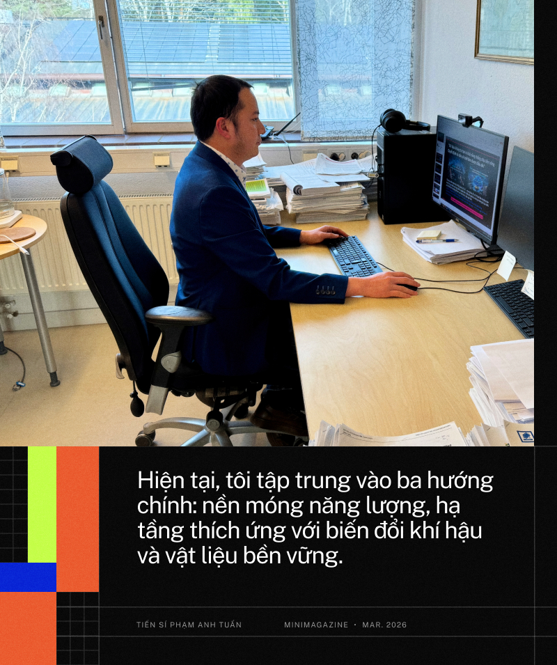 Hiện tại, tôi tập trung vào ba hướng chính: nền móng năng lượng, hạ tầng thích ứng với biến đổi khí hậu và vật liệu bền vững.