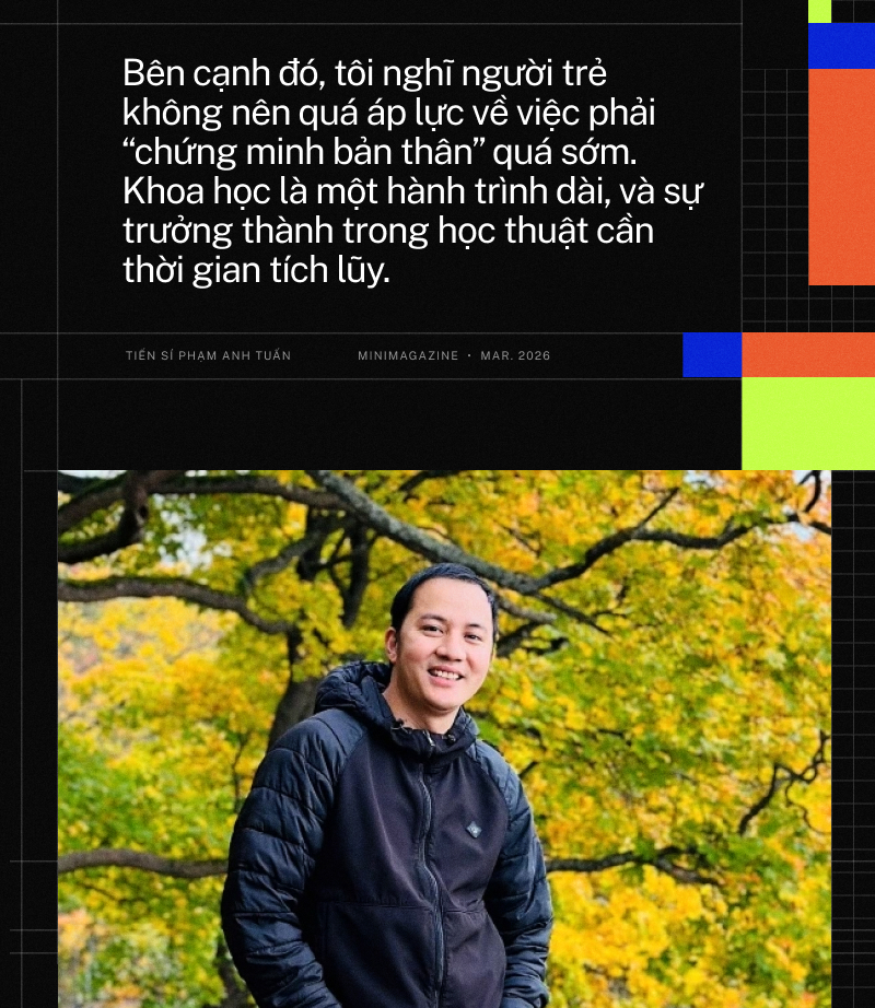 Bên cạnh đó, tôi nghĩ người trẻ không nên quá áp lực về việc phải “chứng minh bản thân” quá sớm. Khoa học là một hành trình dài, và sự trưởng thành trong học thuật cần thời gian tích lũy. Điều quan trọng hơn là mình có đủ kiên nhẫn để xây dựng nền tảng thật vững, thay vì cố gắng chạy nhanh trong ngắn hạn.