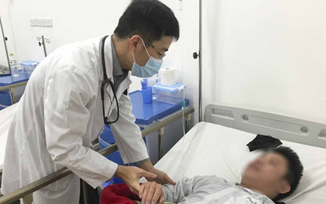 Bác sĩ Tôn đang khám cho bệnh nhân đột quỵ.