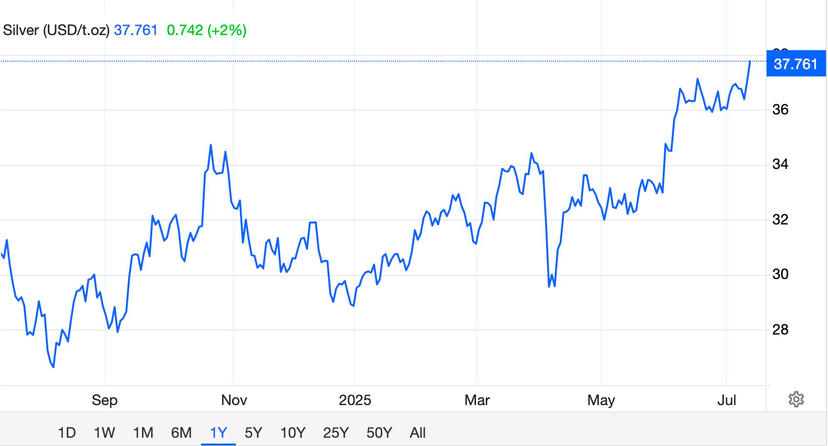 Giá bạc trong 1 năm qua. Nguồn: Trading Economics.