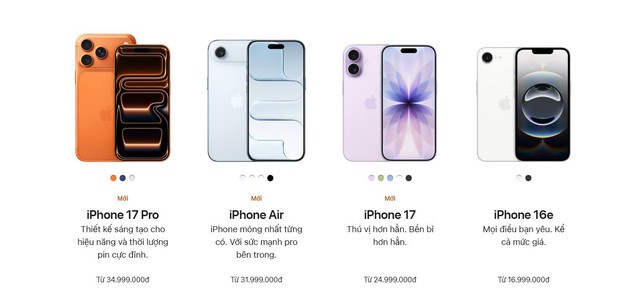 - iPhone 17: giá từ 24,99 triệu đồng (bản 256GB).