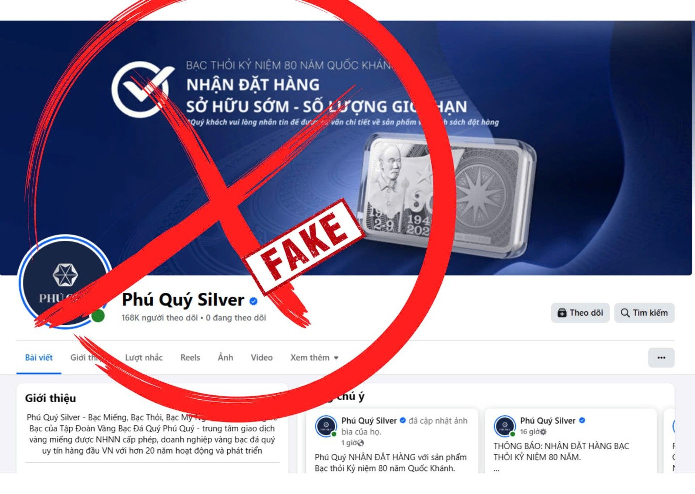 Giả mạo fanpage của Phú Quý nhận đơn đặt mua bạc thỏi kỷ niệm 80 năm ngày quốc khánh 2/9