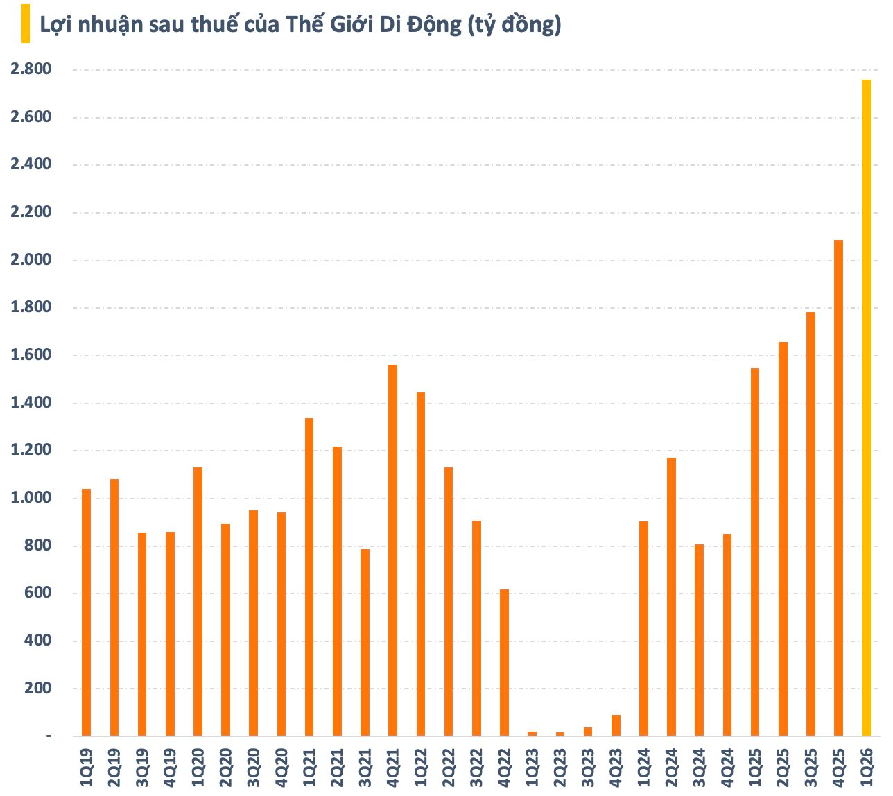 Việc duy trì tồn kho ổn định ở mức cao trong bối cảnh giá đầu vào thiết bị điện tử tăng vọt có thể là một trong những yếu tố hỗ trợ kết quả kinh doanh của Thế Giới Di Động trong quý tới. Trước đó, trong quý đầu năm 2026, doanh nghiệp bán lẻ này ghi nhận doanh thu thuần đạt 46.462 tỷ đồng, tăng gần 29% so với cùng kỳ. Lợi nhuận sau thuế lập kỷ lục 2.758 tỷ đồng, tăng 78% so với quý 1/2025.