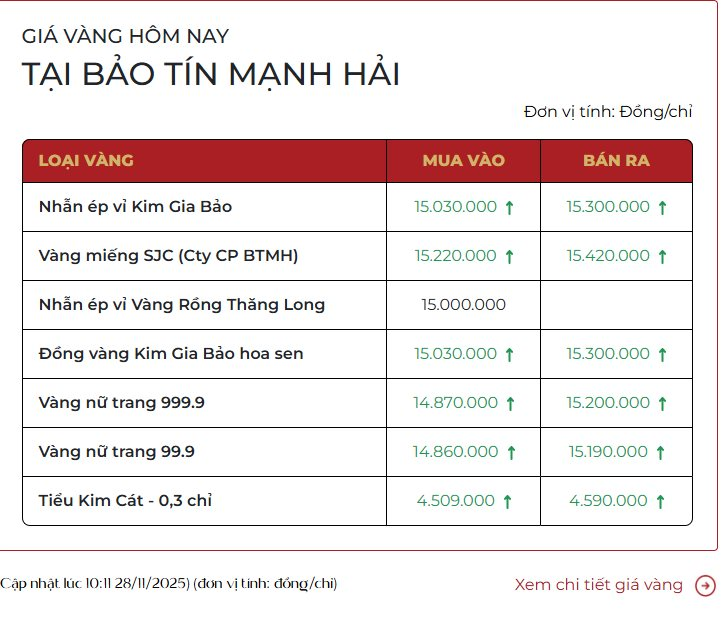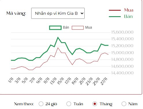Hãng tin CNBC cho hay trong phiên giao dịch ngày 27/11/2025, giá vàng duy trì gần mức cao nhất trong hơn một tuần khi giới đầu tư kỳ vọng Cục Dự trữ Liên bang Mỹ (FED) sẽ hạ lãi suất vào tháng tới, biến kim loại quý này trở thành tài sản được ưa chuộng.