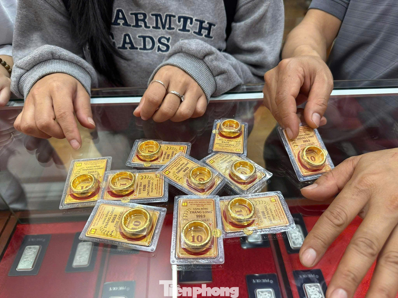 Giá vàng nhẫn cũng giảm theo giá vàng miếng. Cụ thể, vàng nhẫn Phú Quý 170,5 - 173,5 triệu đồng/lượng, giảm 1,5 triệu đồng/lượng so với sáng qua. Vàng nhẫn Mi Hồng 170,5 - 173 triệu đồng/lượng…